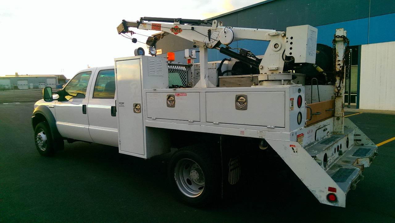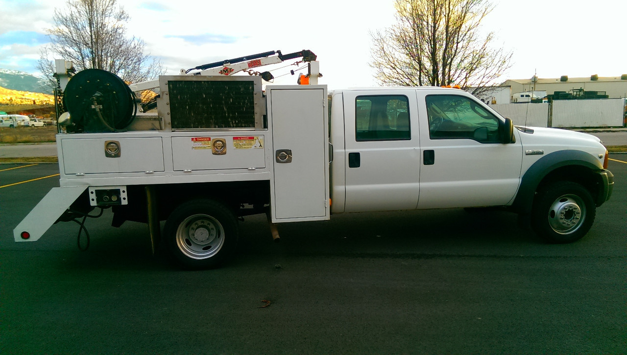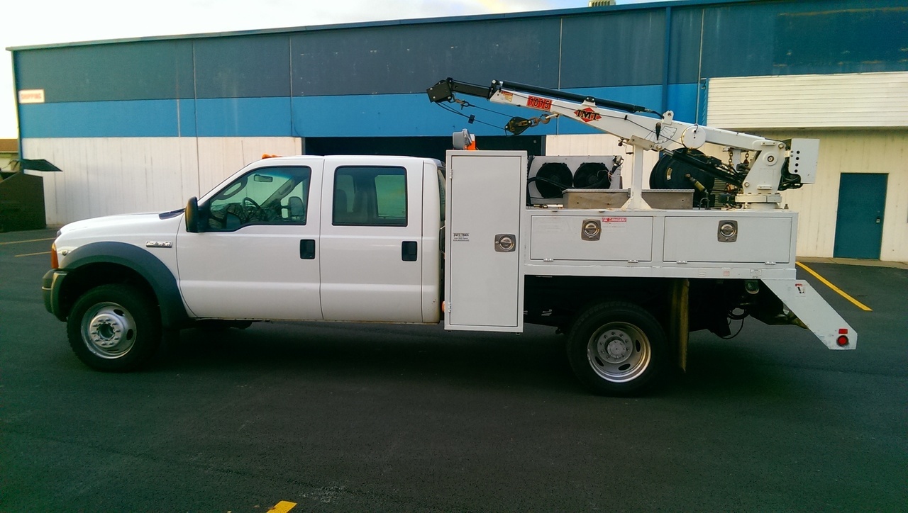 2005 F550 Crew / 3200lb Crane / V10 / 131K / welder-generator-compressor / Tool storage